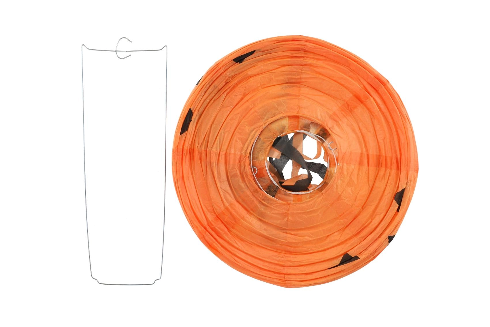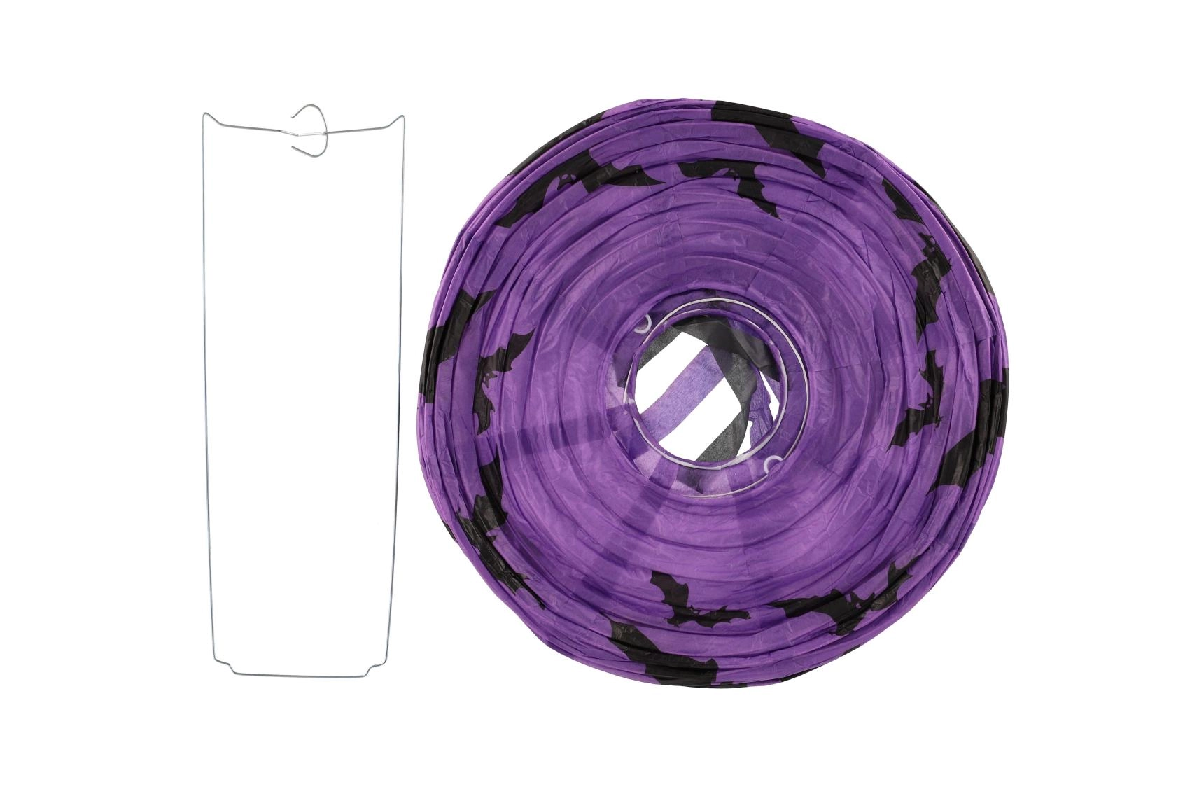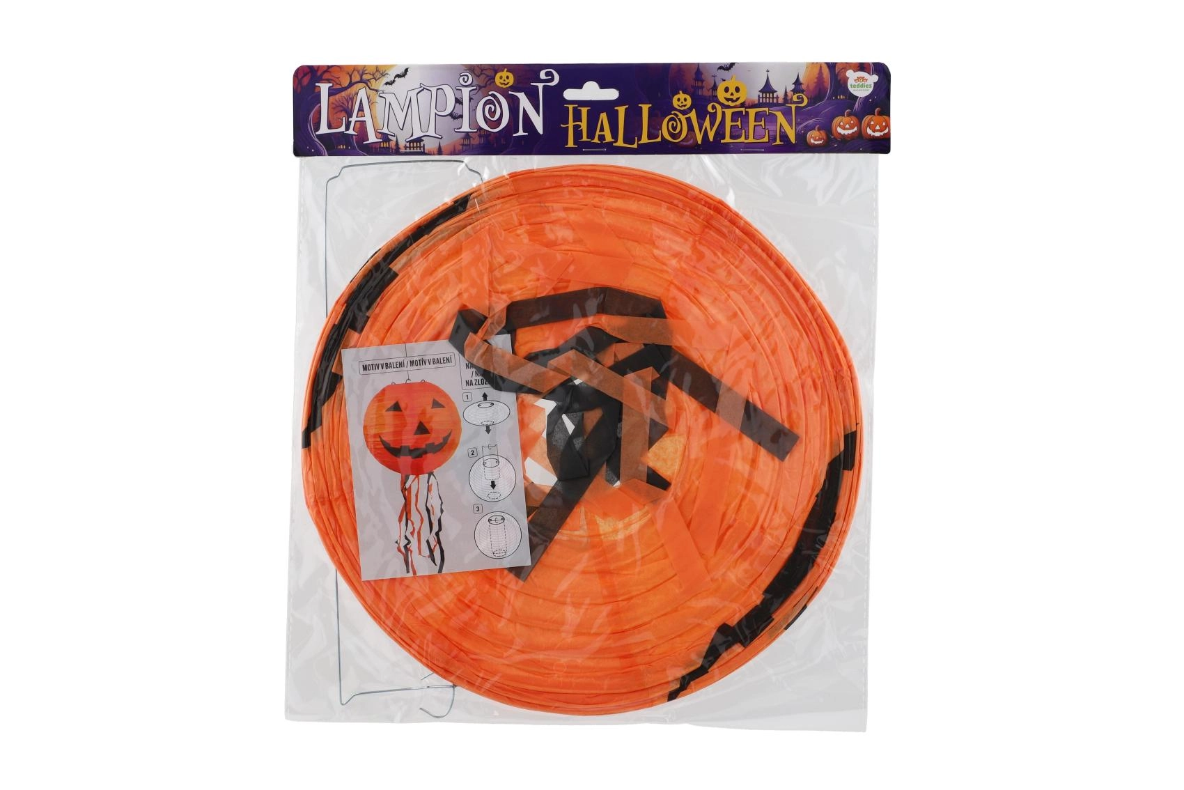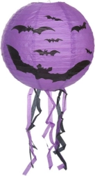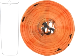 Izveidojiet spocīgi burvīgu atmosfēru ar apaļu Helovīna lampionu 30 cm diametrā. Lampions ir no viegla papīra, un pateicoties apakšējiem pušķiem, tas, iekārts, izskatās ļoti efektīgi. Pieejami trīs izteiksmīgi motīvi: ķirbis (oranžs), sikspārņi (violeti) un zirnekļi (balti).
