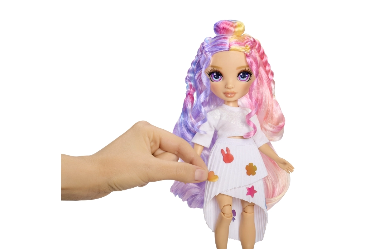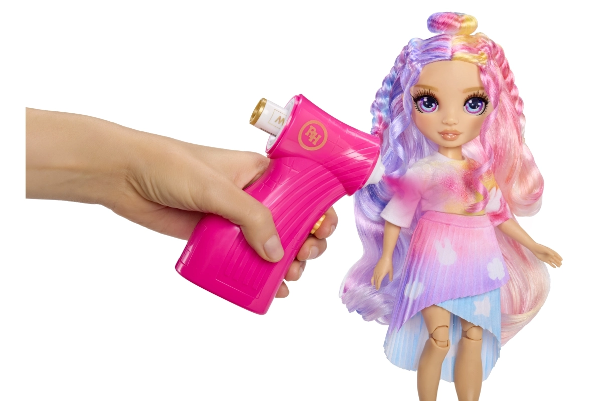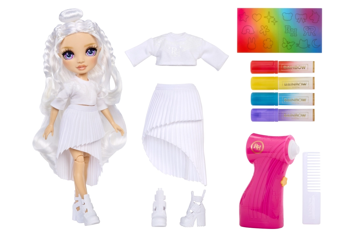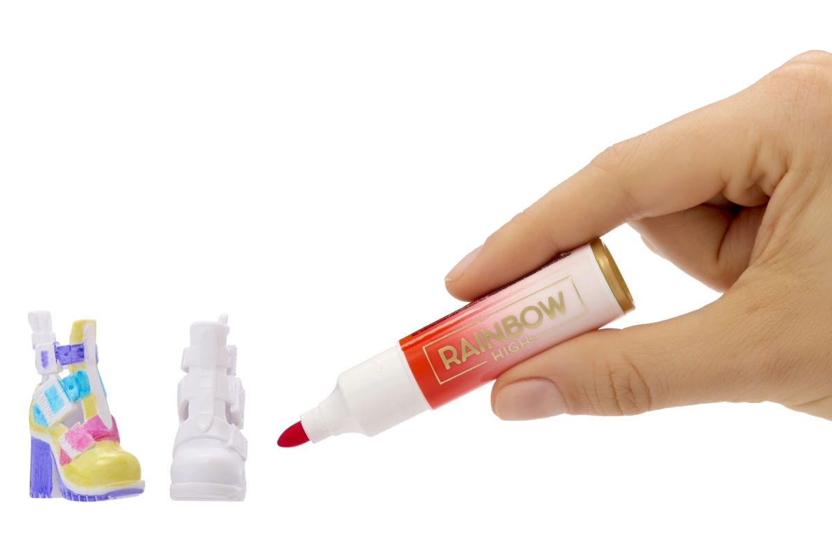 Rainbow High Airbrush & Create lelle ir kā tukšs audekls mazajiem dizaineriem. Ar iekļautajiem mazgājamajiem marķieriem un gaisa aplikatoru jūs viegli izveidosiet oriģinālu izskatu – no maigām pārejām līdz izteiksmīgiem rakstiem. Gatavo dizainu var jebkurā brīdī nomazgāt un sākt no jauna.