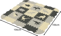 Mīksts un drošs putu paklājiņš no puzles daļām izveidos bērniem mājīgu vietu rotaļām. Pateicoties biezam, amortizējošam slānim, tas pasargā no aukstuma un kritieniem, ūdensizturīga virsma ir viegli tīrāma, bet precīzi piegulošās daļas droši turas kopā. Krāsainie dinozauru motīvi veicina radošumu, koordināciju un formu un krāsu apgūšanu.