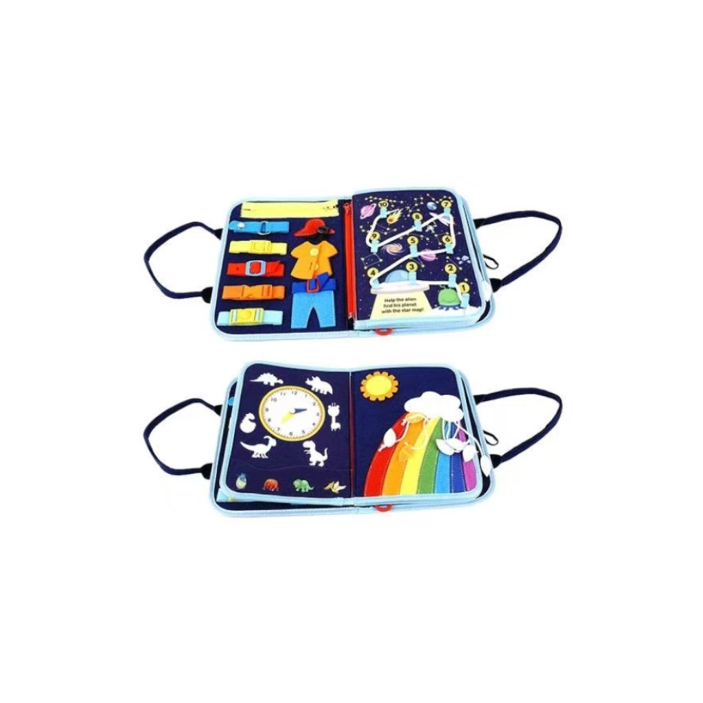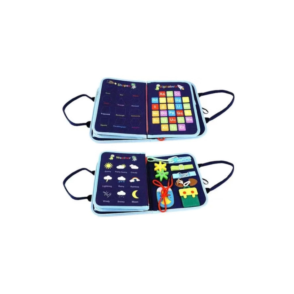 Atklājiet jautru un attīstošu rotaļlietu bērniem: sensoru nodarbinātības grāmatu ar kosmosa motīvu no 2Kids Toys. Tā veicina sīko motoriku, loģisko domāšanu, koncentrēšanos un sensoro uztveri. Ar aktivitātēm, kā pogas, sprādzes, rāvējslēdzēji, lipekļi (Velcro) un kurpju šņores, bērni trenē veiklību un patstāvību. Grāmata ir mīksta un viegla – ideāli piemērota ceļošanai un mājām, lieliska kā dāvana bērniem no 3 gadu vecuma.