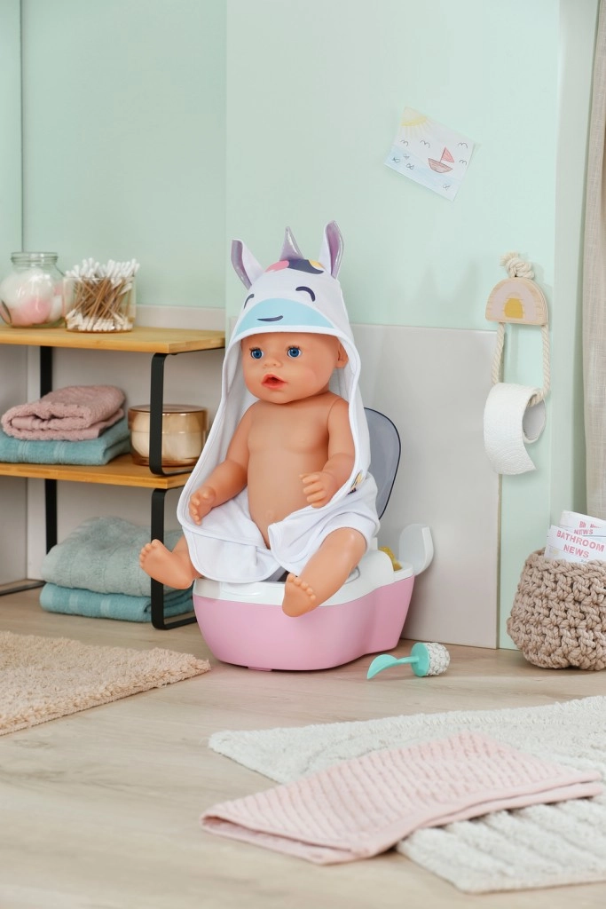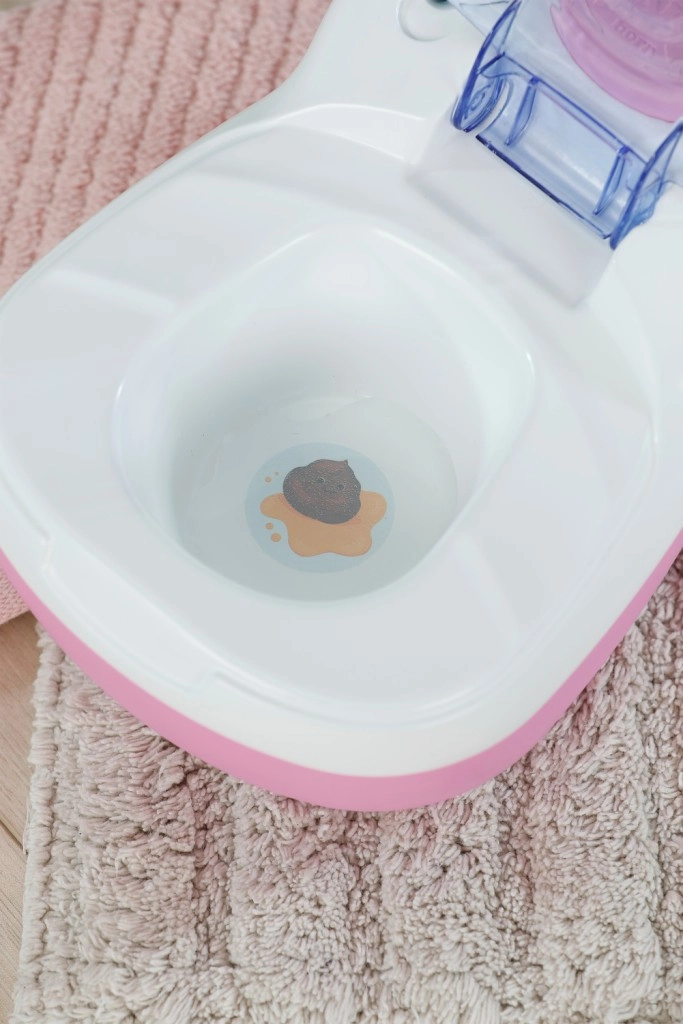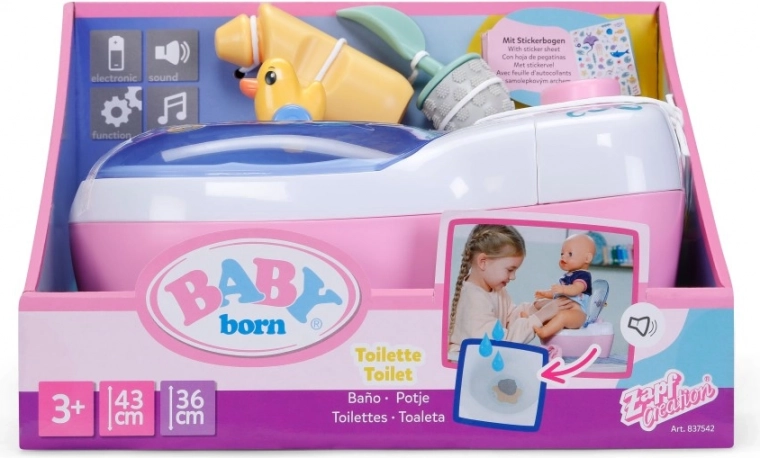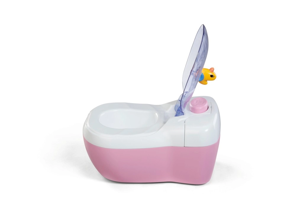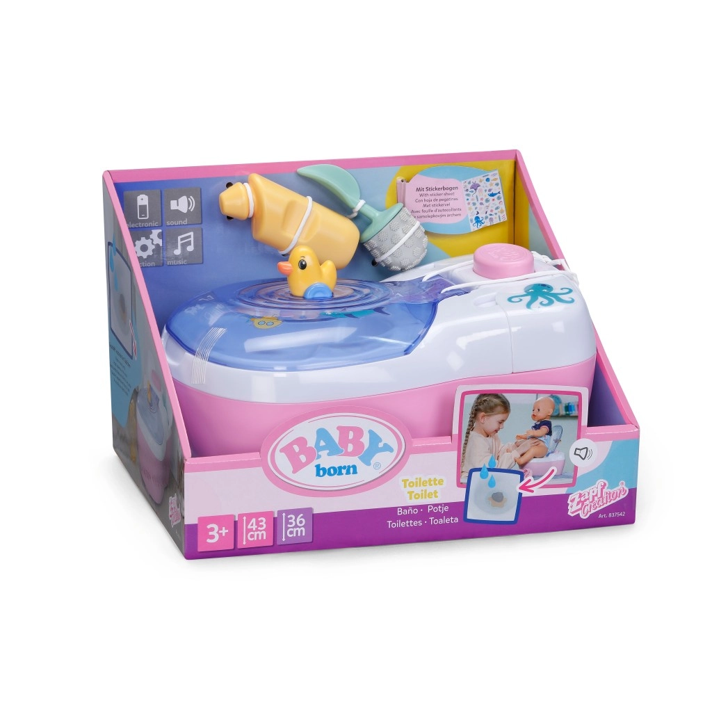 Interaktīvā BABY born tualete pārvērš ikdienas rūpes par lelli jautrā rituālā. Tiklīdz lelle apsēžas uz sēdriņa, atskan reālistiskas šļakstīšanās skaņas, un, ja viņa paliek sēžot ilgāk, ieslēdzas jautra melodija un pēc tam skalošanas skaņa. Tas viss motivē bērnus rotaļīgi trenēt higiēnas paradumus.