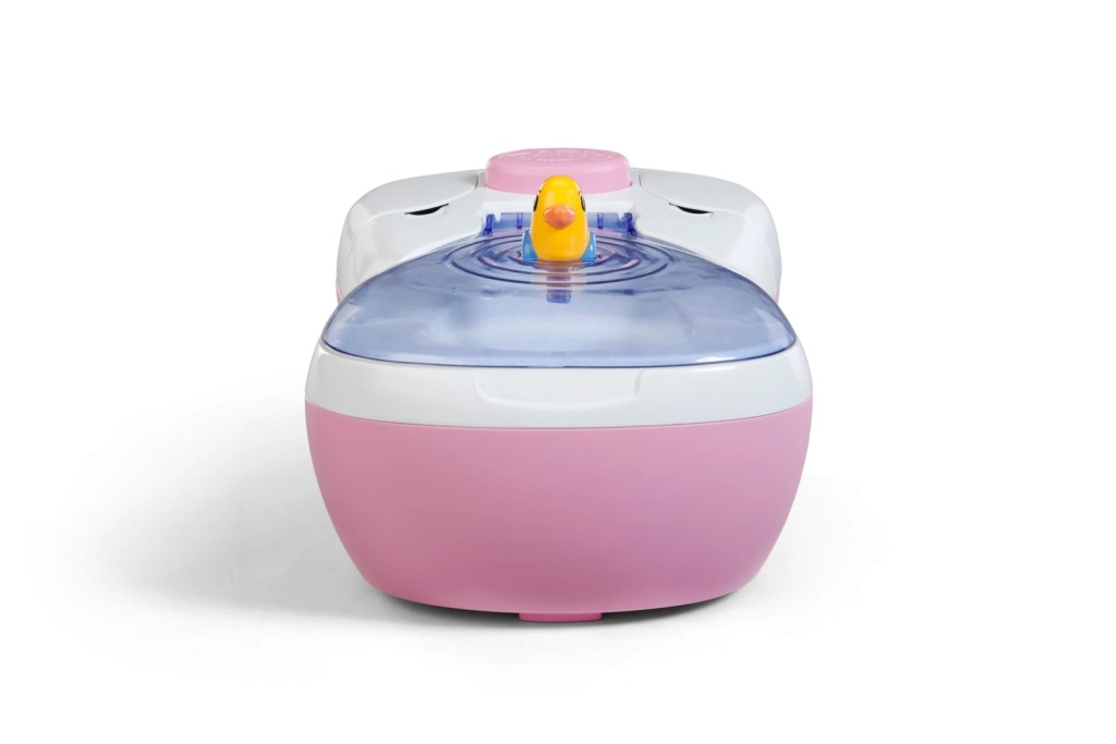 Burvīgo “ūdens maģiju” nodrošina ūdens pilieni bļodā – parādās čurāšanas un kakāšanas attēls, kas bērnus izklaidē un vienlaikus veicina viņu iztēli. Komplektā ir tualetes birste un pudelīte tīrīšanas līdzeklim, kuras var novietot praktiskajos nodalījumos. Krāsainās uzlīmes ar zemūdens pasaules motīvu ļauj tualeti radoši izdekorēt.