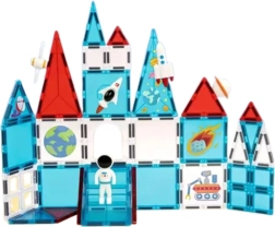 Šis magnētiskais konstruktors apvieno mācīšanos un izklaidi. Pateicoties dažādajām formām – trīsstūriem, kvadrātiem un taisnstūriem – bērni viegli veido izturīgas būves, transportlīdzekļus un oriģinālas kosmosa ainas. Caurspīdīgie, košās krāsās elementi stimulē maņas un piešķir katram veidojumam efektīgu izskatu.
