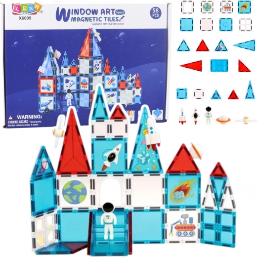 Atklājiet radošo pasauli ar kosmosa tematikā iedvesmotām magnētiskajām konstruktoru detaļām. Spēcīgie magnēti nodrošina stabilas konstrukcijas, daudzveidīgās formas veicina radošumu, loģisko domāšanu un sīko motoriku. Komplektā 58 detaļas ar astronautu, raķeti un dekoratīvām flīzēm ļauj bērniem veidot fantastiskas kosmosa bāzes un transportlīdzekļus.