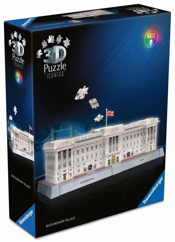 Uzbūvē ikonisko Londonas dominantējošo celtni kā stilīgu vitrīnas modeli. “Nakts izdevuma” komplekts no ICONICS sērijas izmanto stabilas plastmasas detaļas un integrētu LED apgaismojumu ar vairākiem režīmiem, kas ļauj Bakingemas pili iespaidīgi iemirdzēties.