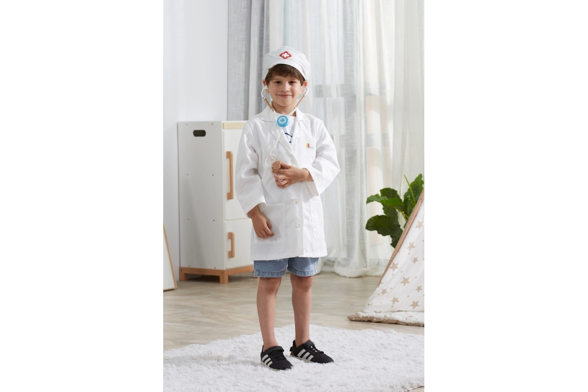 Sniedziet bērniem autentisku pieredzi no medicīniskās vides. Kostīms ir veidots ērtai valkāšanai un vieglai uzvilkšanai, lieliski der karnevālam, svinībām un ikdienas rotaļām mājās. Pateicoties universālajiem izmēriem, tas labi pielāgojas pirmsskolas vecuma bērnu augumam.
