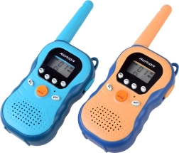 Izklaides pilns divu bērnu rāciju komplekts spēlēm ārā un mājās ar darbības rādiusu līdz 3 km atklātā apvidū. Vienkārša lietošana, 16 frekvences, skaļuma regulēšana un balss modulators (zēns, meitene, robots + oriģināls) parūpēsies par daudz piedzīvojumiem. Ir arī ievades zvana signāli (4 toņi), jostas klipsis un caurums siksniņai – ideāli dārzam, pludmalei, mežam un slepenām misijām.