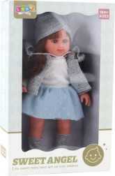 Mīlīgā lelle SWEET ANGEL ar augstumu 36,5 cm elegantā pelēkā komplektā (kleitiņa, jaciņa, cepurīte un kurpītes) iepriecinās ikvienu bērnu. Tā ir mīksta, patīkama pieskārienam un radīta pašiem mazākajiem – veicina iztēles attīstību, emocijas un lomu spēles ģimenes rotaļās.