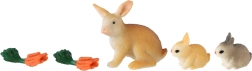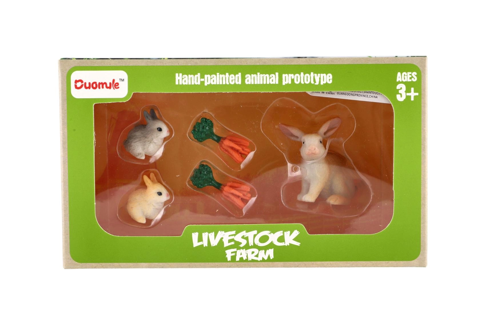 Komplektā ietilpst 3 plastmasas trusīši dažādās krāsās un pozās, papildināti ar nelieliem piederumiem kopšanai un spēlēšanai. Bērni var veidot savus stāstus, attīstīt iztēli un vingrināt sīko motoriku.