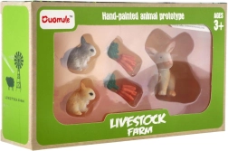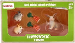 Mīlīgs trīs plastmasas trusīšu komplekts ar piederumiem radošai spēlei. Veicina iztēli, empātiju un sīko motoriku. Ideāli bērnu leļļu mājai vai dzīvnieku fermai, kā arī lieliska dāvana pateicoties praktiskajai kastītei.