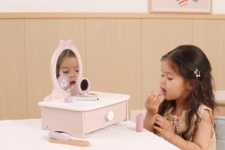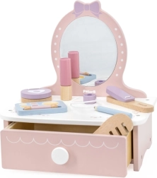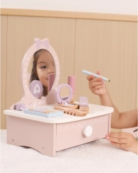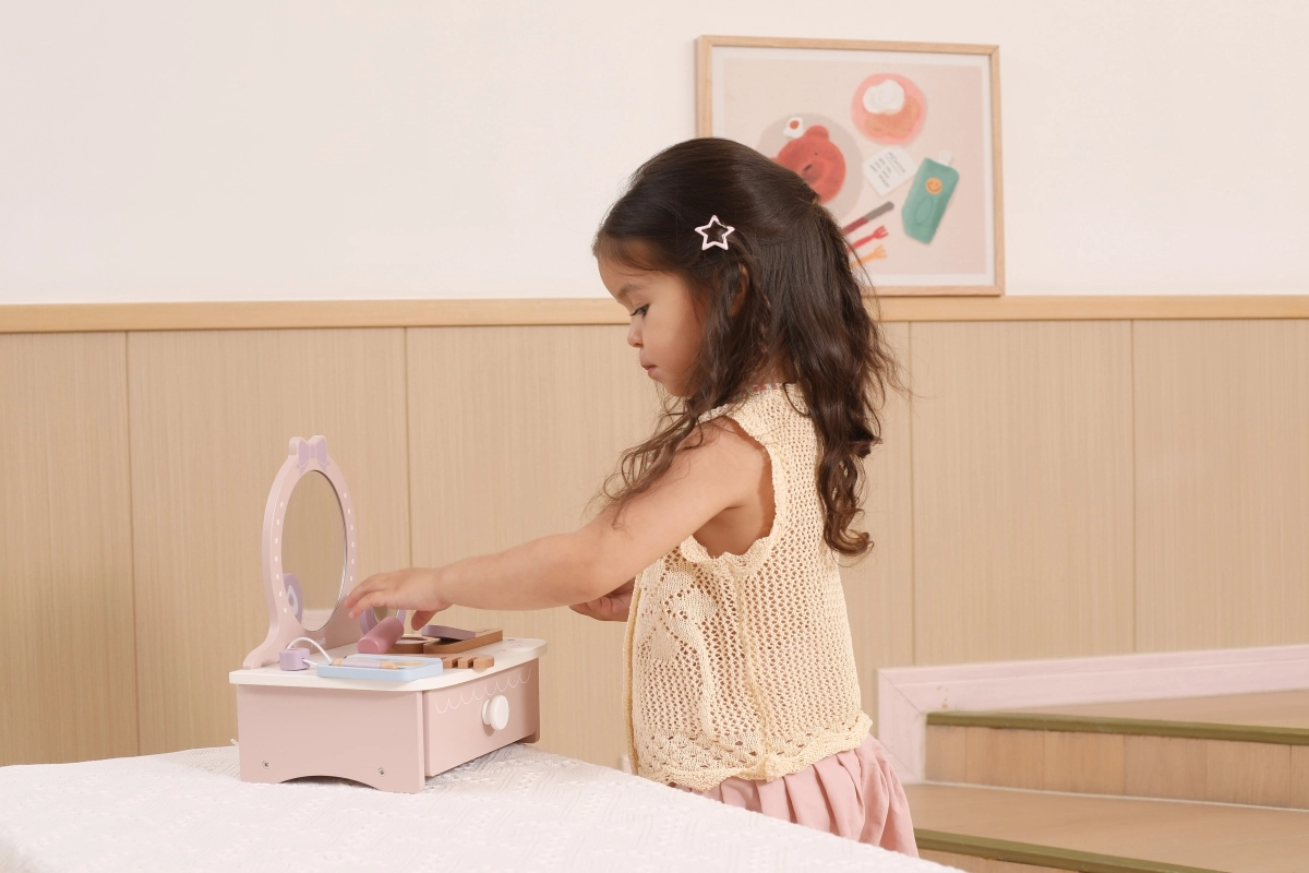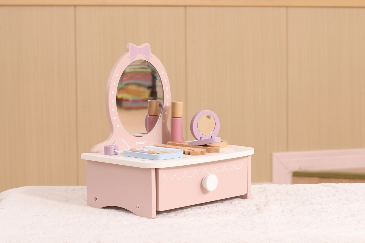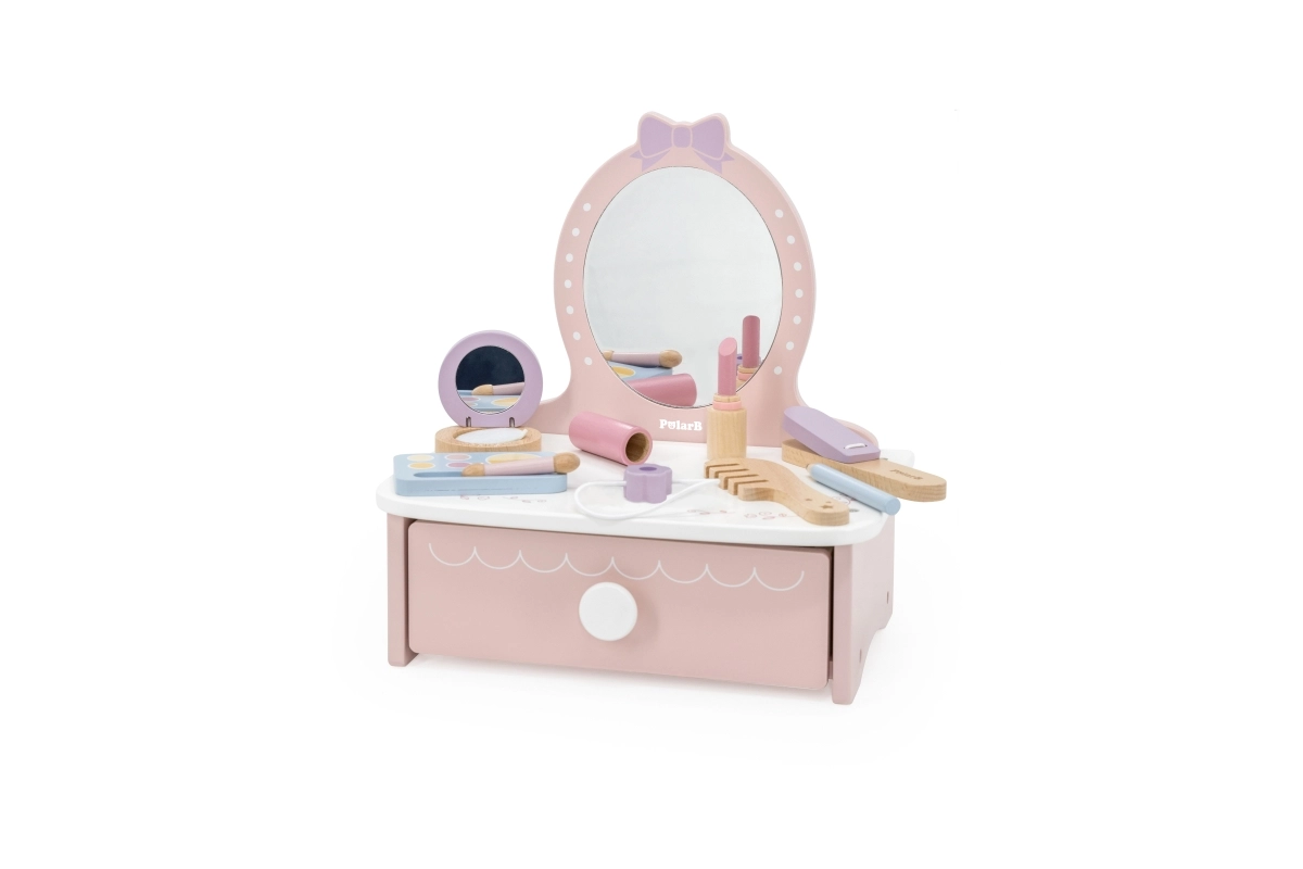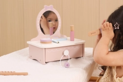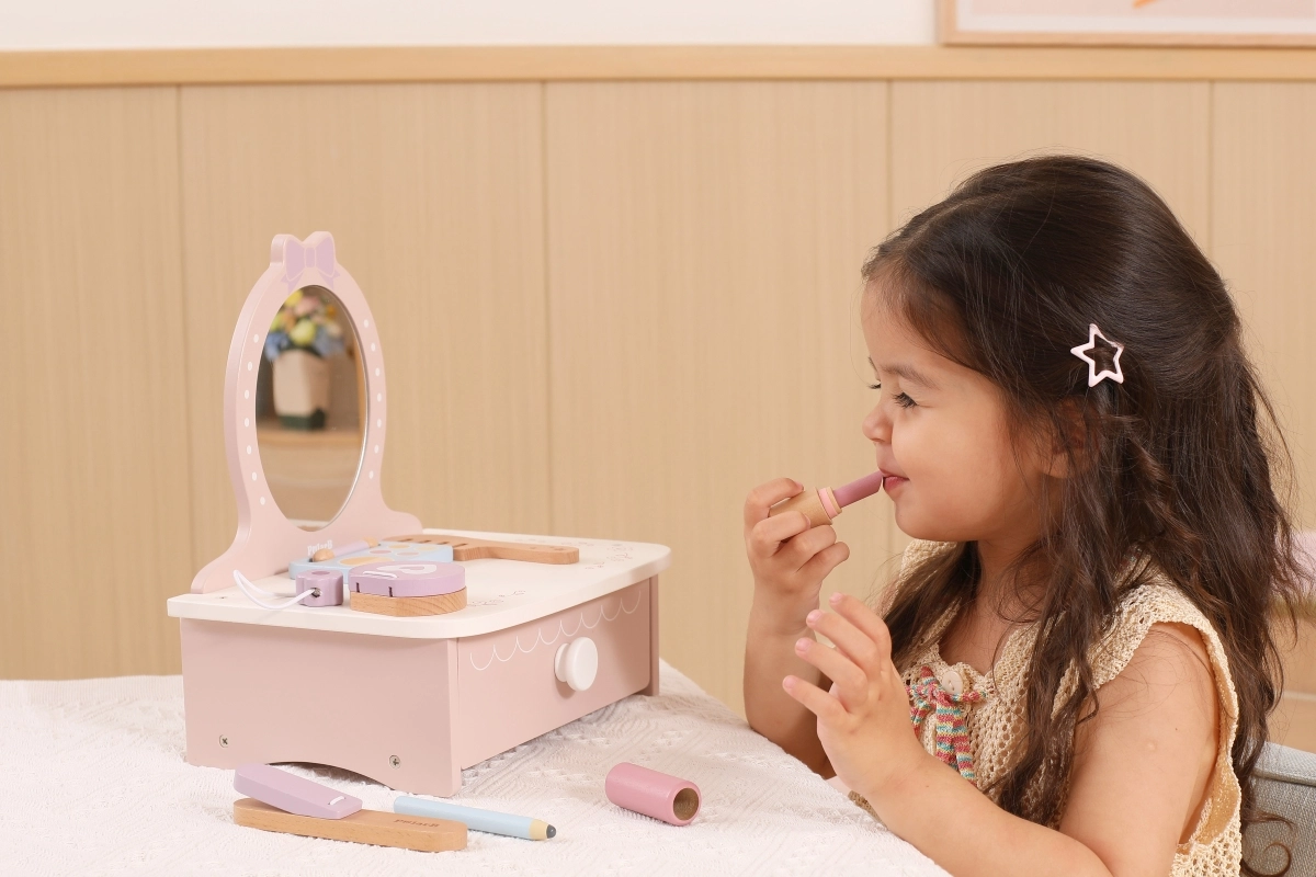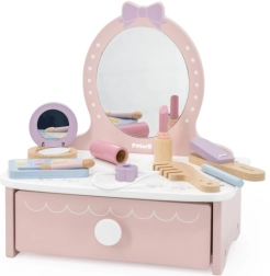 Šis mīlīgais koka tualetes galdiņš ir lielisks papildinājums jebkurai bērnu istabai. Veicina fantāziju, sociālās lomas spēles un sīko motoriku. Pateicoties izturīgajai koka konstrukcijai, tas ir drošs un ilgmūžīgs ikdienas rotaļām.