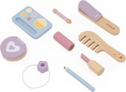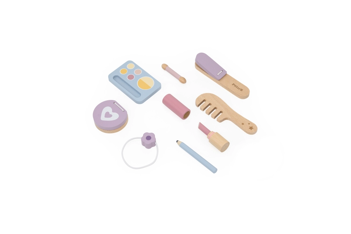 Stilīgs bērnu koka tualetes galdiņš sniedz stundām ilgu radošu izklaidi. Komplektā galds un droši koka piederumi, piemēram, ķemmīte, lokšķēres un grims. Ideāli piemērots bērniem no 3 gadiem. Izturīgs koka izpildījums, bagātīgs piederumu klāsts un kompakti izmēri ērtai novietošanai bērnu istabā.