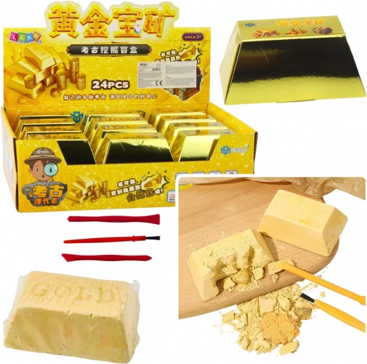 - zelta ķieģelis sašķelšanai, slēptais dārgums, meiselis, āmuriņš, birstīte, oriģināls iepakojums