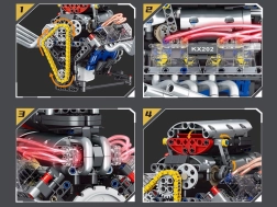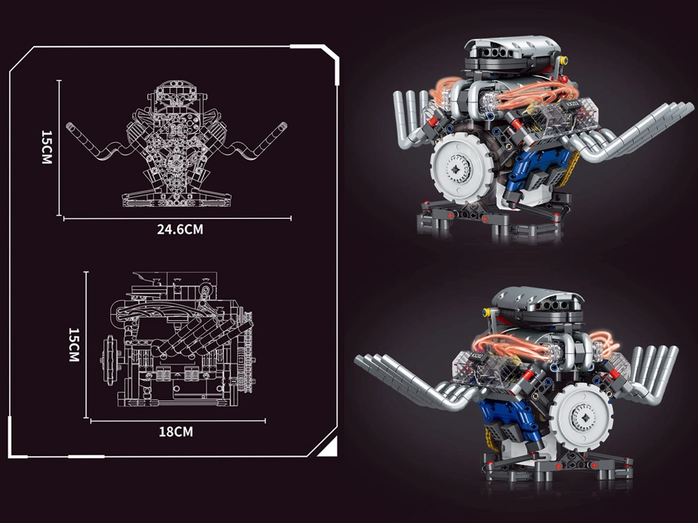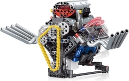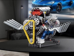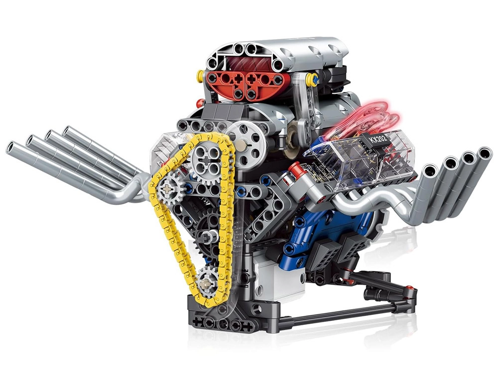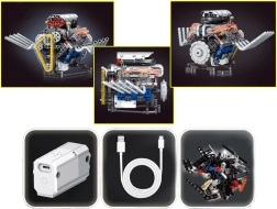 Šis tehniskais komplekts soli pa solim ved cauri funkcionējoša motora modeļa salikšanai ar barošanu no akumulatora. Pateicoties pārdomātajai konstrukcijai, praksē redzēsiet, kā darbojas virzulis, sadales siksna un spararats, kā arī kā enerģija tiek pārnesta mehānismos.