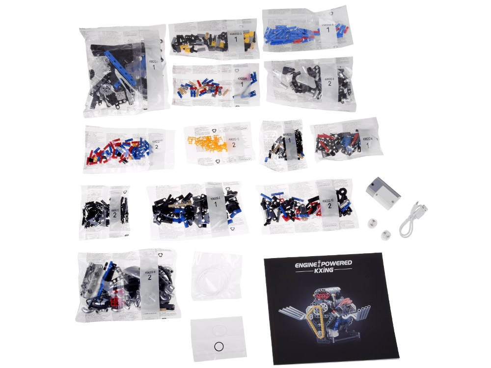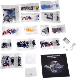 Komplektā iekļauti numurēti maisiņi ērtai orientācijai, USB kabelis uzlādei un pārskatāma attēlu instrukcija. Efektīgā sarkanā gaisma piešķir modelim iespaidīgu izskatu un izceļ kustīgās daļas.