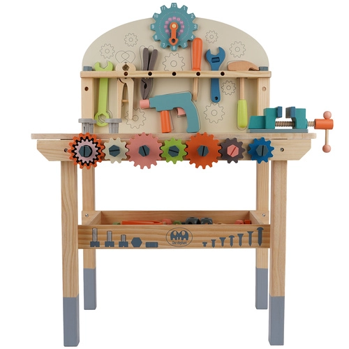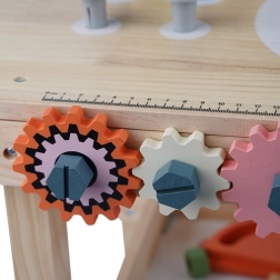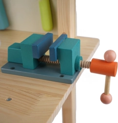 Bērnu koka darbnīcas galds KRUZZEL piedāvā pilnvērtīgu meistarošanas staciju mazajiem skrūvju meistariem. Galds ar integrētu skrūvspīli, mērlīniju un iepriekš ieturētiem caurumiem ļauj īsti “strādāt” drošā vidē. Dabīgi, netoksiski materiāli un noapaļotas malas nodrošina drošu spēli, savukārt stabila konstrukcija iztur ikdienas piedzīvojumus.
