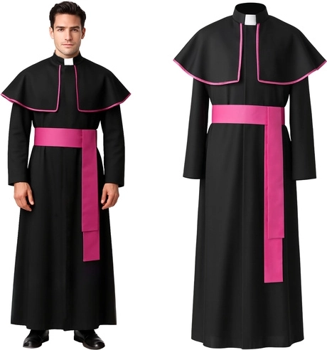 - Pilns 3‑vienā komplekts – sutāna ar apkaklīti, pelerīna un josta