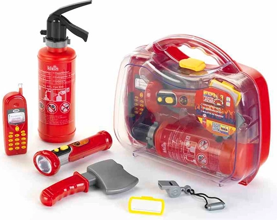 Ugunsdzēsēju koferītis ar 6 piederumiem ir ideāls komplekts bērniem, kuri mīl glābēju piedzīvojumus. Pateicoties ugunsdzēšamā aparāta izsmidzināšanas funkcijai (tilpums 0,5 l), bērni var reālistiski trenēt iejaukšanos un rotaļīgā veidā attīstīt iztēli un motoriku.