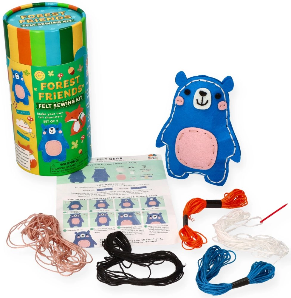 Šis jautrais komplekts piedāvā vienkāršu šūšanu pašiem mazākajiem. Bērni apgūs pamatdūrienus un izveidos savus mīkstus meža dzīvnieciņus. Pateicoties drošām un pārskatāmām sastāvdaļām, šūšana ir viegla un iedvesmojoša.