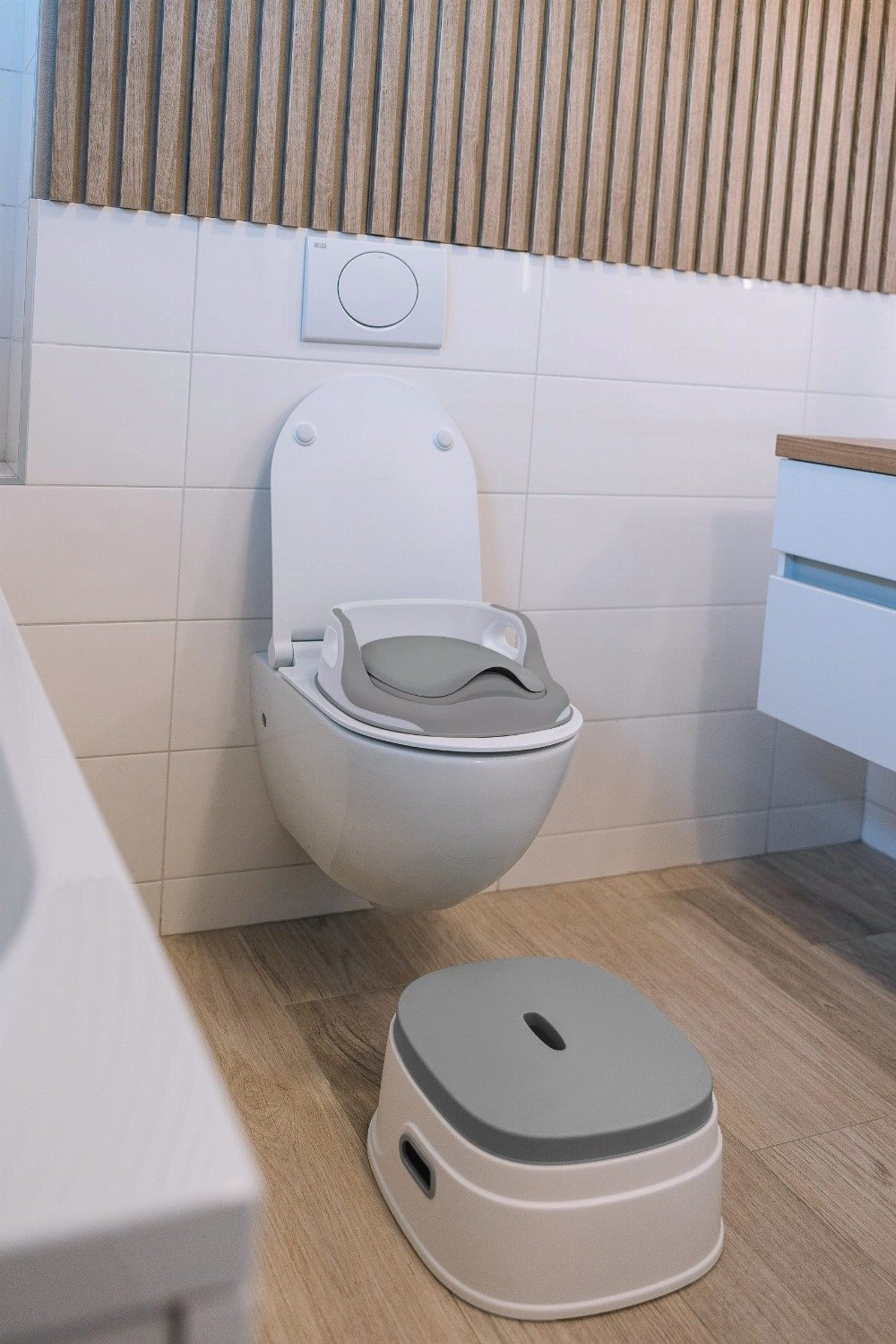 Komplektā ietilpst izņemamā iekšējā bļoda ērtai un ātrai tīrīšanai, noņemams WC adapteris lietošanai uz standarta tualetes un praktisks pakāpiens ar sānu rokturiem, kas palīdz bērnam aizsniegt izlietni vai augstākas virsmas.