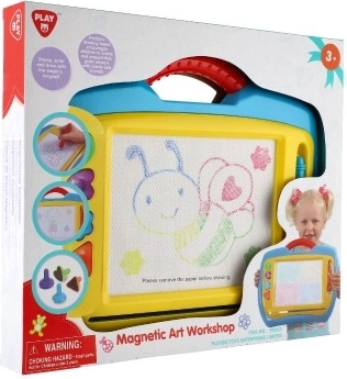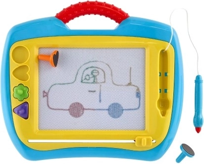 Magnētiskā planšete ir lieliska alternatīva papīram – bērni var zīmēt atkal un atkal, bez flomāsteriem un bez traipiem. Pateicoties ērtajai slīdošajai gumijai/slēdzim, attēlu var viegli nodzēst, un virsma ir gatava jaunam darbam. Izturīgs plastmasas korpuss ar rokturi atvieglo pārnēsāšanu.