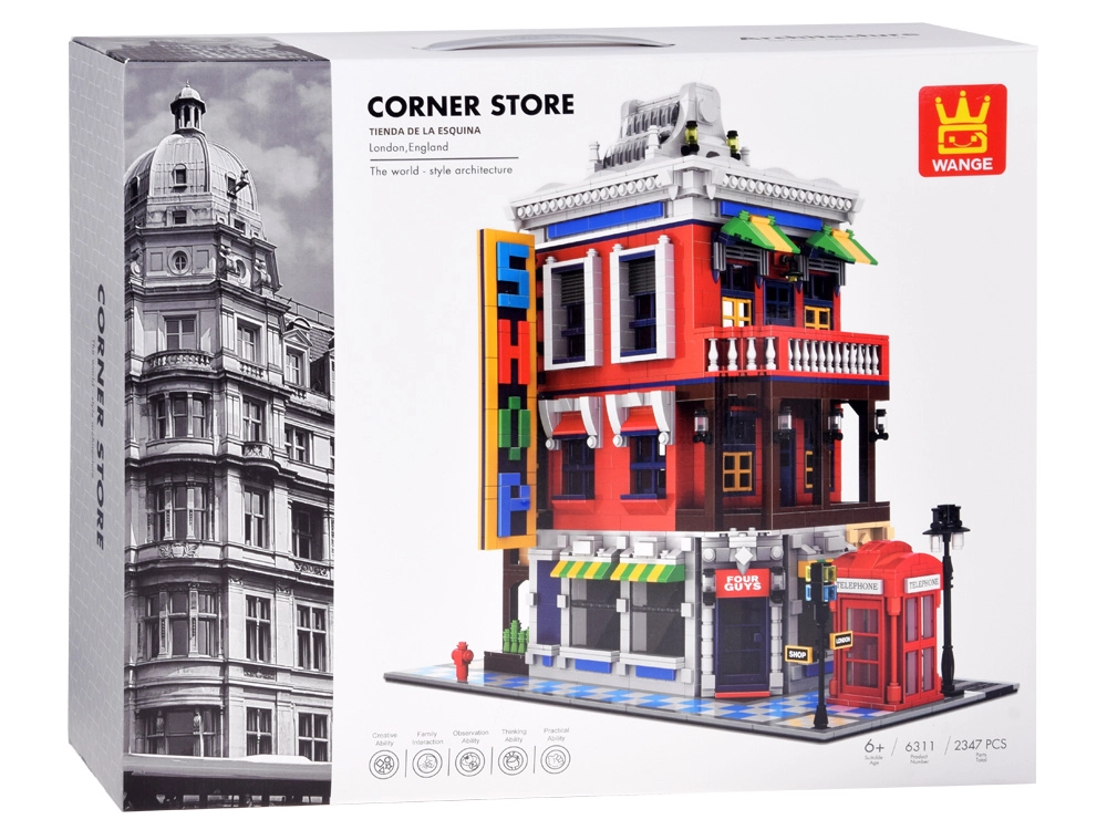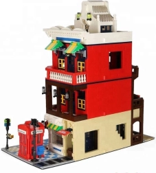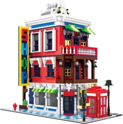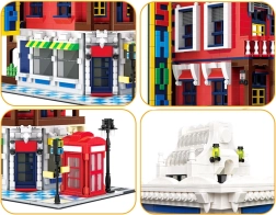 Modelis ir pilns ar ikoniskām detaļām: sarkanā telefona būdiņa – Lielbritānijas simbols, ielas zīme reālistiskai ainai, dekoratīva izkārtne un rūpīgi veidots jumts, kas akcentē ēkas arhitektūras stilu.