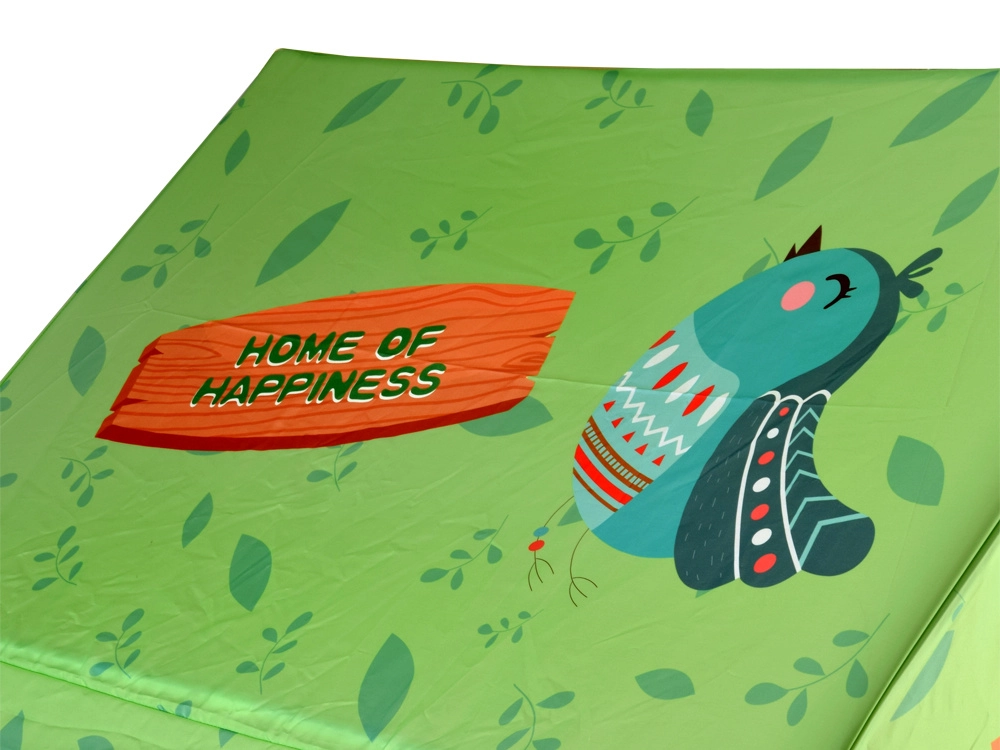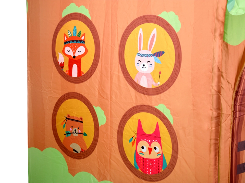 Telts namiņš Meža draugi ar jautru grafiku ar pūcīti un putniņiem radīs mājīgu vietu rotaļām, lasīšanai un atpūtai. Pateicoties nelielajam svaram un ātrai salikšanai, tas ir piemērots gan bērnu istabai, gan dārzam. Ieejas atvērums un logi nodrošina labu piekļuvi un gaisa cirkulāciju.