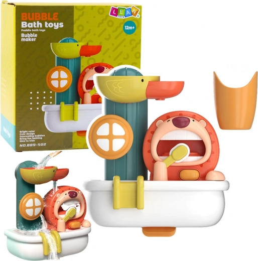 Interaktīva vannas rotaļlieta koša putu ražotāja veidolā pārvērš ikdienas higiēnu jautrā nodarbē. Smaidošais lauva “tīra zobus” un izlaiž bagātīgas putas, kamēr pīlīte iedarbina ūdens slidkalniņu ar griežamiem riteņiem. Pateicoties piesūcekņiem, tā turas gan pie vannas, gan flīzēm un motivē bērnus uz patstāvību un veselīgiem ieradumiem.