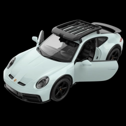 Šis licencētais modelis PORSCHE 911 Dakar elegantā matētā piparmētru krāsā ir izgatavots no kvalitatīva ABS plastmasas un augstvērtīgām mehāniskām un elektroniskām komponentēm. Tas uzticami atveido reālo auto un izceļas ar ātru, precīzu braukšanu un bagātīgi izstrādātu interjeru.