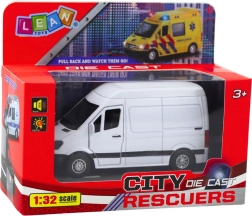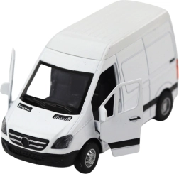 Reālistisks metāla furgons mērogā 1:32 iepriecinās gan mazos, gan lielos fanus. Tas piedāvā pull back atvilkšanas piedziņu, atveramas durvis un gaismas un skaņas efektus. Kvalitatīva metāla un plastmasas kombinācija nodrošina izturību, bet baltais minimālistiskais dizains iederas jebkurā modeļu kolekcijā.