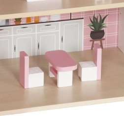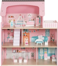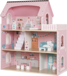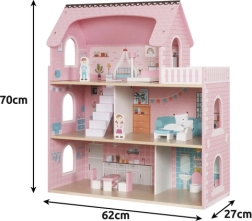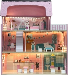 Liela koka leļļu māja KRUZZEL ar LED apgaismojumu, 3 stāviem un 5 istabām ar balkonu iepriecinās ikvienu bērnu. Tā ir droša un stabila, izgatavota no gludi slīpēta koka bez asām malām. Iepakojumā atradīsiet pilnu mēbeļu un piederumu komplektu, tāpēc rotaļas var sākt uzreiz pēc salikšanas. Silta balta gaisma rada burvīgu atmosfēru arī vakara spēlēm.