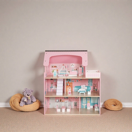 Komplektā ir pilns mēbeļu aprīkojums, lai bērni varētu nekavējoties iekārtot istabiņas un attīstīt fantāziju. Izstrādājums atbilst Eiropas standartiem un ir izgatavots no ekoloģiska koka, kas to padara par atbildīgu izvēli gan ģimenei, gan planētai.