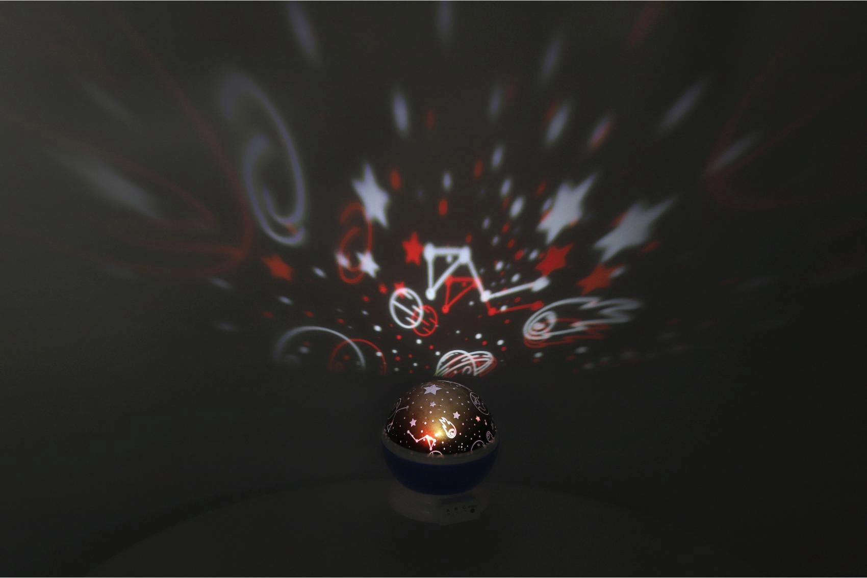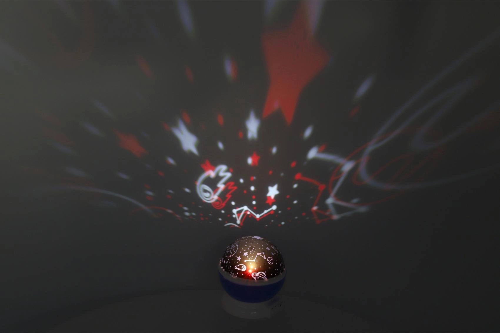 - Maģiska projekcija ar zvaigžņotām debesīm nomierinošai atmosfērai.