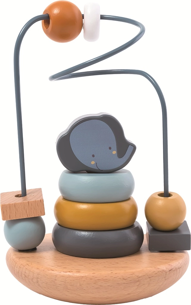 Krellīšu labirints ar ziloņu trenē acs–rokas koordināciju un satvērienu, bet varavīksnes loki palīdz kārtot pēc izmēra un veidot radošas formas.
