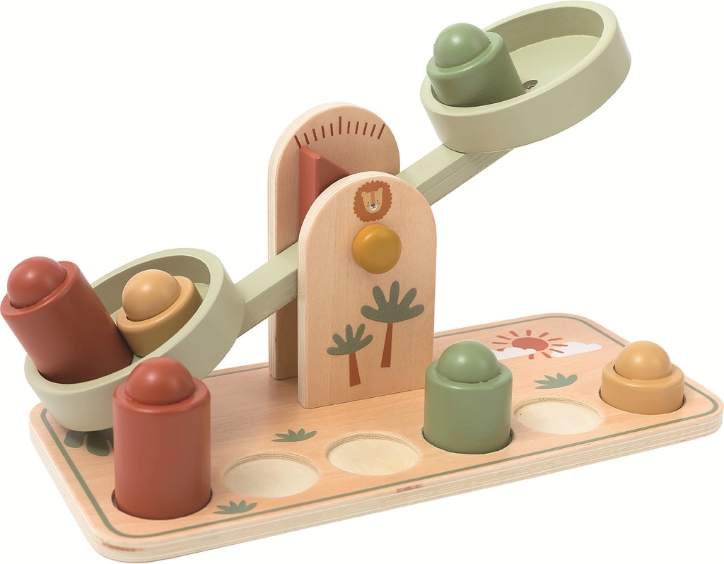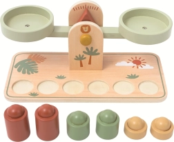 Rotaļlieta iedvesmota no Montessori pedagoģijas – tā veicina patstāvīgu izzināšanu, sīkās motorikas, acu–roku koordinācijas un loģiskās domāšanas attīstību. Pateicoties izturīgajam koka izpildījumam, gludajām malām un nomierinošām pasteļkrāsām, svari ir lielisks papildinājums bērnu istabai un bērnudārzam.
