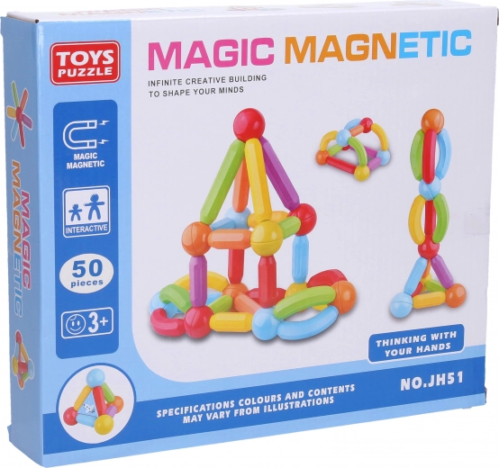 Atklājiet radošo pasauli ar šo universālo magnētisko konstruktoru ar 50 detaļām. Pateicoties vieglai savienošanai, bērni attīsta smalko motoriku, telpisko iztēli un radošumu, būvējot visdažādākās formas un konstrukcijas.