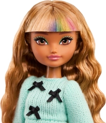 Praktiskie aksesuāri – ķemme, “matu laka”, “lokšķēres”, tālrunis ar maciņu, zvaigžņu somiņa un grāmatiņa – veicina iztēli un sīkās motorikas attīstību. Tērps ar piparmētru džemperīti ar bantītēm, spīdīgu melnu svārku un potīšu zābaciņiem papildināts ar reālistiskām detaļām, kas bērniem patīk.