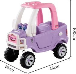 Ikoniskais rozā–violetais Cozy Coupe Truck apvieno stabilu konstrukciju ar pārdomātām detaļām ikdienas rotaļām. Bērns var pārvietoties ar savām kājām režīmā foot‑to‑floor vai arī jūs varat to ērti vadīt, izmantojot praktisko rokturi uz jumta. Noņemamā grīda palielina drošību mazākiem bērniem, bet lielākiem sniedz vairāk patstāvības.