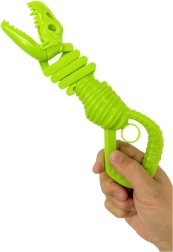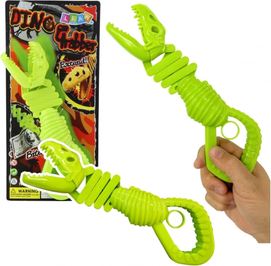 Izklaidējoša un interaktīva rotaļlieta bērniem – zaļš satvērējs dinozaura skeleta formā. Nospiežot rokturi, žokļi aizveras un droši satver priekšmetu, veicinot sīko pirkstu motoriku, kustību koordināciju un radošu spēli. Izgatavots no izturīgas plastmasas ilgstošai un drošai izklaidei.