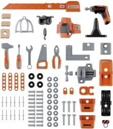 Iekļauts auto konstruktors, ko mazie mehāniķi viegli saliks dažos soļos. Darbnīcā ir āmuriņš, riteņu atslēga, skrūvgriezis, plakana/atvērtā tipa atslēga, knaibles, zāģis, liela skava un bīdmērs, kā arī skrūves, uzgriežņi, naglas un stiprinājumi. Savietojama un paplašināma ar visiem BLACK+DECKER instrumentiem no Smoby.