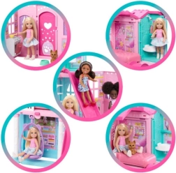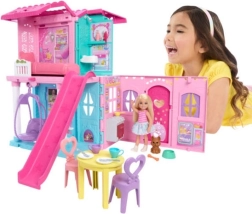 Atklājiet burvīgu fantāzijas pasauli ar salokāmo mājiņu lellītei Chelsea no zīmola Barbie! Šis košais komplekts, atverot to, pārvēršas lielā mājā ar vairāk nekā piecām spēļu zonām – no viesistabas ar šūpuļkrēslu, caur virtuvi ar atveramu krāsni, līdz pat guļamistabai, vannas istabai un jautru slidkalniņu. Komplektā ir arī lellīte Chelsea, viņas sunītis un daudz aksesuāru bezgalīgiem stāstiem.