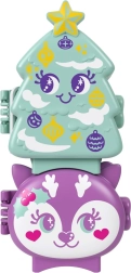 Divi mīlīgi POLLY POCKET kompaktkomplekti ziemeļbrieža un Ziemassvētku eglītes formā nodrošina dubultu ceļojumu izklaidi. Iekšā gaida ziemas valstība un mājīgs namiņš, mikrolelle, dzīvnieciņš un tematiski piederumi bezgalīgiem svētku stāstiem. Komplektus var stāvēt vienu uz otra, veidojot vienotu ziemas ainu, un ar klipsi tos viegli piestiprināt pie mugursomas. Lieliska dāvana bērniem no 4 gadu vecuma.