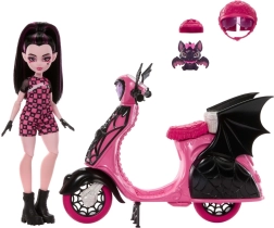 Atklājiet gotikas noskaņās veidoto MONSTER HIGH pasauli ar lelli Draculaura un stilīgo motorolleru ar sikspārņu spārniem un tīmekļa detaļām. Pateicoties funkcionālām detaļām, piemēram, brīvi griežamiem riteņiem un stendam, brauciens ir stabils un aizraujošs. Aizmugurējā grozā brauc mazais sikspārnis Grāfs Brīnišķīgais, kuram ir sava ķivere – drošība un stils pirmajā vietā.