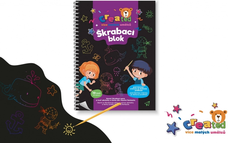 Šis skrāpējamais piezīmju bloks sniedz bērniem un pieaugušajiem aizraujošu veidu, kā radoši izpausties. Zem tumšās kārtas slēpjas krāsains pamats, kas atklājas ar vienkāršu noskrāpēšanu. Veidojiet zīmējumus, uzrakstus, apsveikumus vai nelielus plakātiņus – fantāzijai nav robežu.