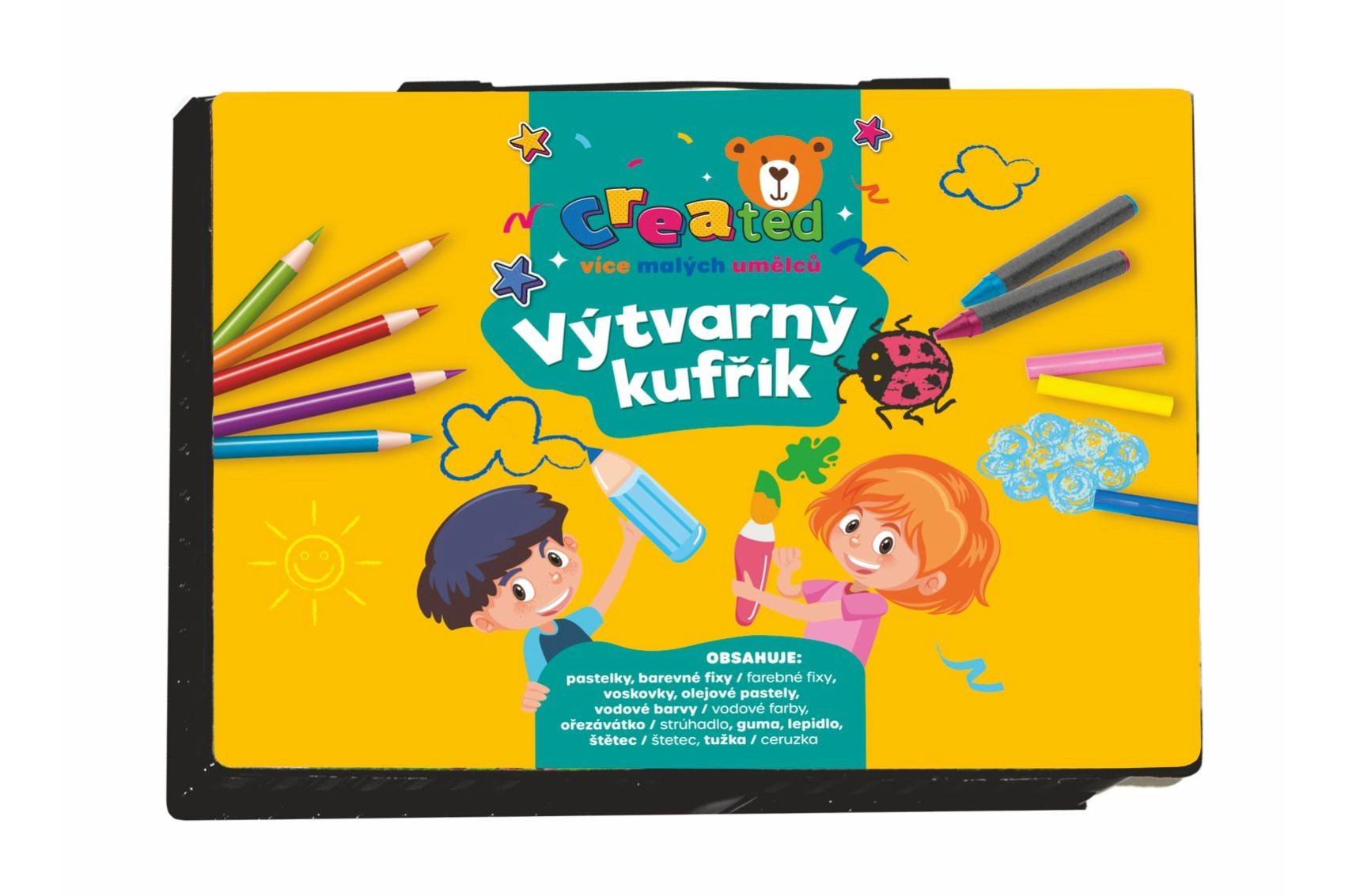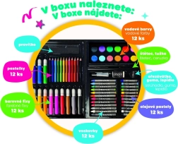Praktisks radošais komplekts mazajiem māksliniekiem izturīgā plastmasas koferītī piedāvā visu nepieciešamo zīmēšanai un gleznošanai. Ideāli piemērots mājās, bērnudārzā un ceļojumos. Satur daudzveidīgu piederumu klāstu, kas attīsta bērnu iztēli un sīko motoriku, tostarp krāsainos zīmuļus, flomāsterus un akvareļkrāsas.