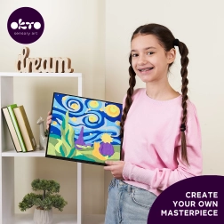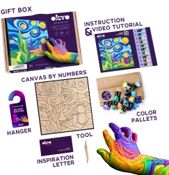 Radošs komplekts bērniem un pieaugušajiem – izveidojiet burvīgu gleznu Mazais Princis: nakts debesis ar veidojamo masu un ciparu marķējumu palīdzību. Vienkārša, jautra un relaksējoša radīšana uz audekla ar izmēru 29 × 29 cm, ar visu nepieciešamo komplektā.