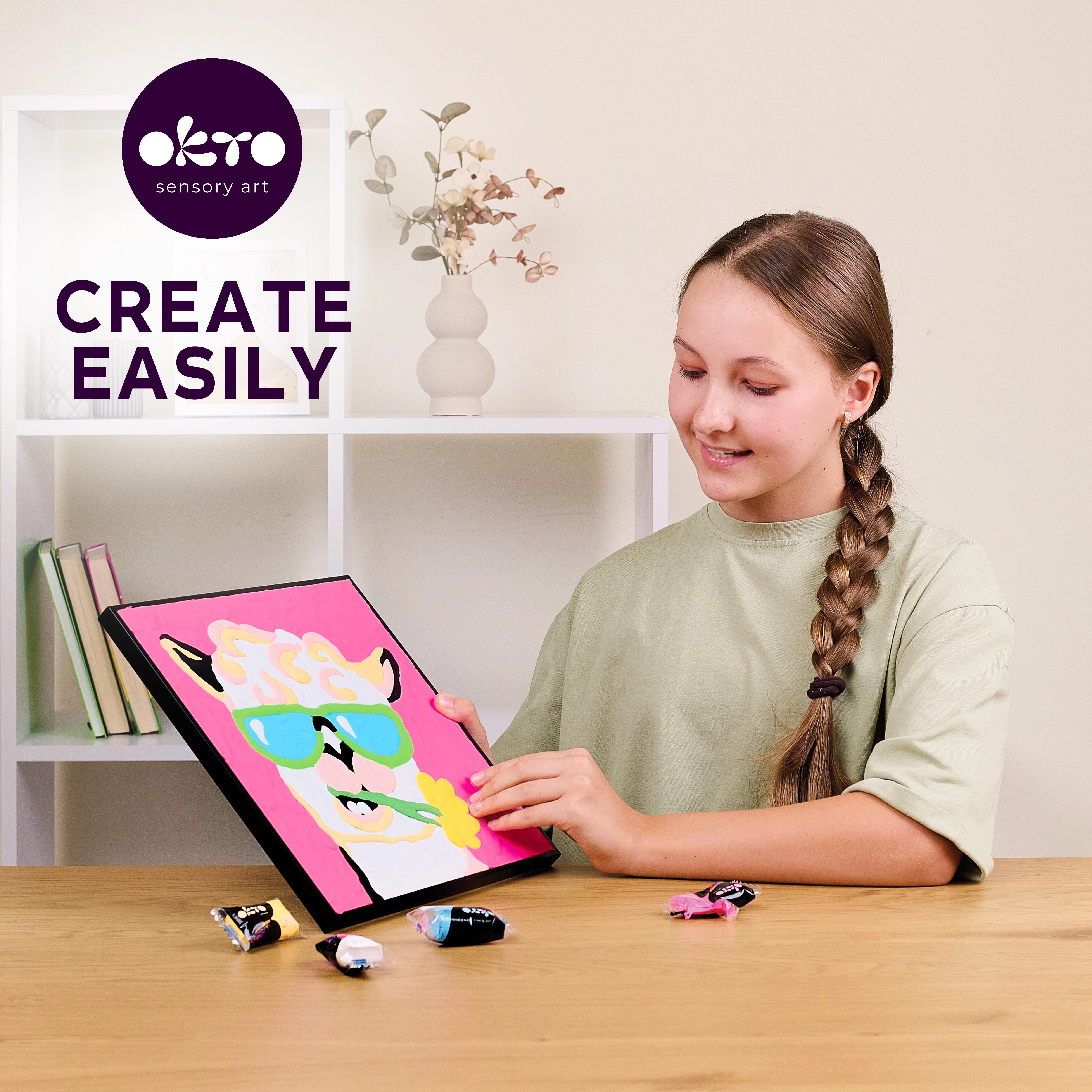 Atklājiet aizraujošu veidu, kā radīt darbus ar plastisku modelējamo masu, kas piešķir gleznai unikālu tekstūru. Pateicoties skaitļiem, jūs viegli virzīsieties soli pa solim un sasniegsiet lielisku rezultātu pat bez iepriekšējas pieredzes. Mīlīgās lamas motīvs lieliski iederēsies bērnu istabā vai kā oriģināla dāvana.