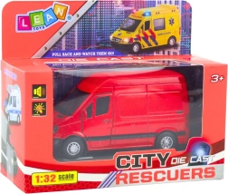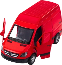 Reālistisks metāla furgons mērogā 1:32 intensīvi sarkanā krāsā iepriecinās mazos auto entuziastus. Tas piedāvā atveramas durvis, gaismas un skaņas efektus un ir gatavs lietošanai, jo komplektā ir baterijas. Lieliska izvēle gan spēlēšanai, gan kolekcionāru vitrīnai.