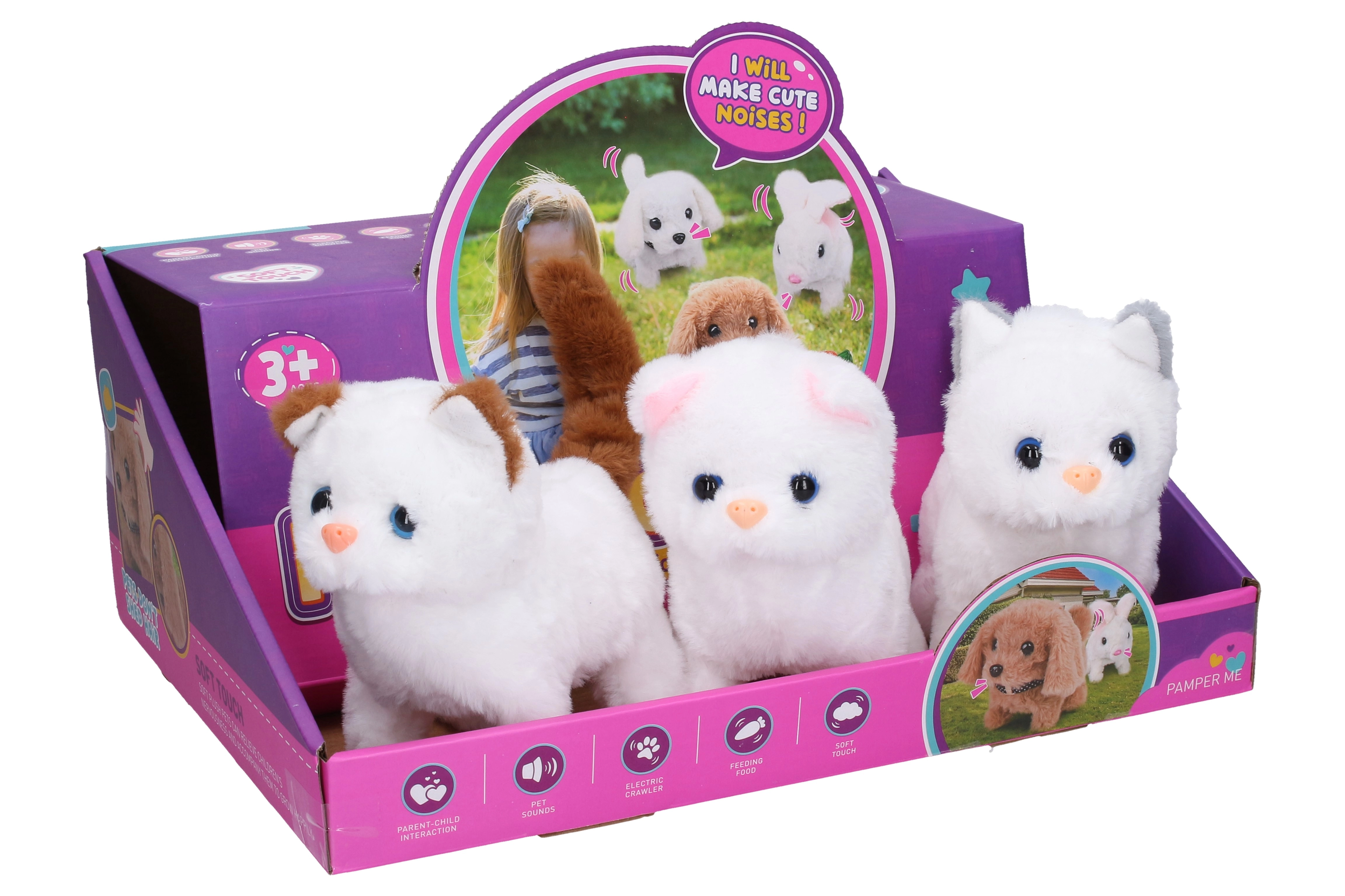 Mīlīga staigājoša kaķene iepriecinās ikvienu bērnu – tā kustas, murrā/mjauj un kustina asti. Pateicoties ON/OFF slēdzim, vadība ir vienkārša un droša. Ideāls 16 cm izmērs izklaidei mājās un ceļā.