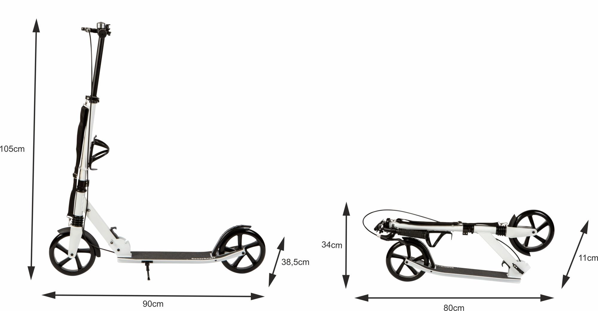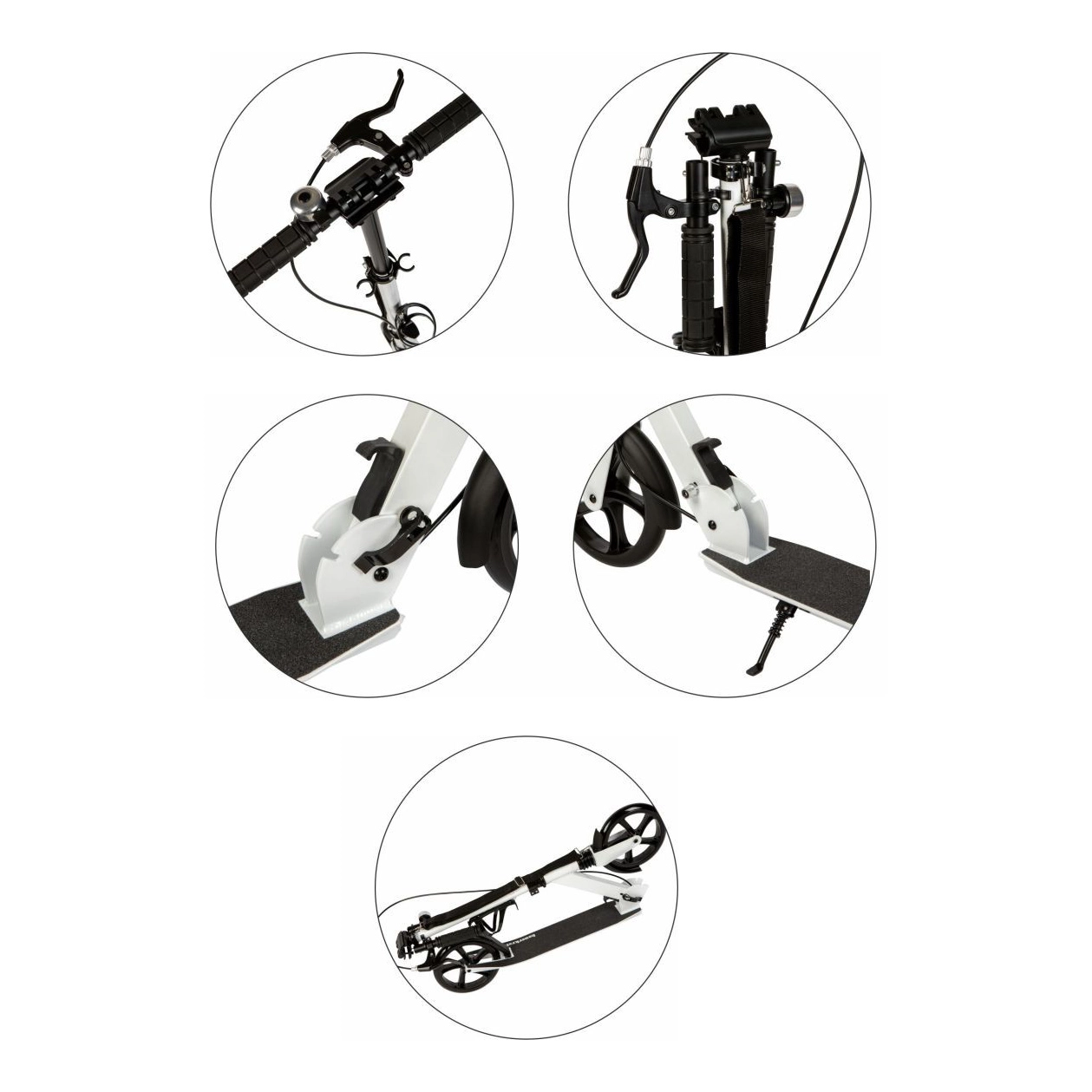 Izturīgie saliekamie eņģu mezgli un drošības fiksatori ļauj skrejriteni salocīt acumirklī. Pateicoties vieglajai alumīnija konstrukcijai un kājbalstam, pārnēsāšana ir ļoti ērta.